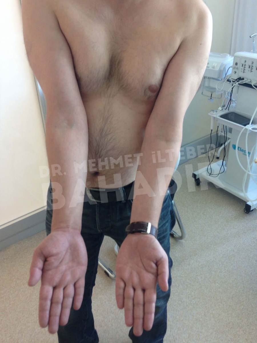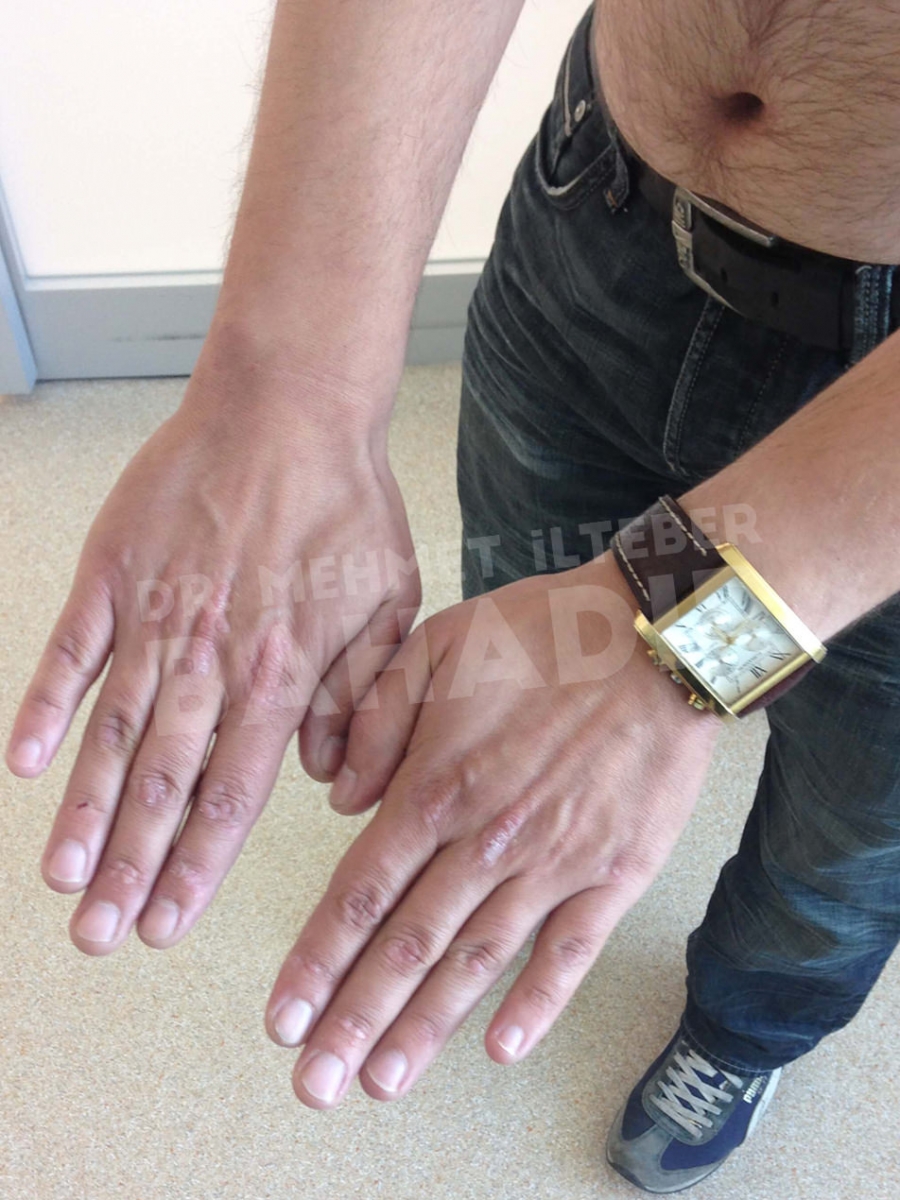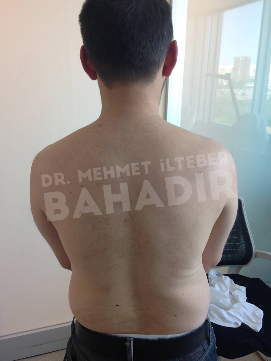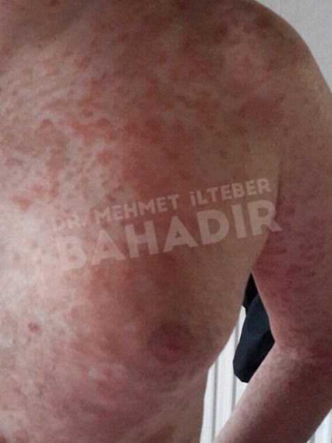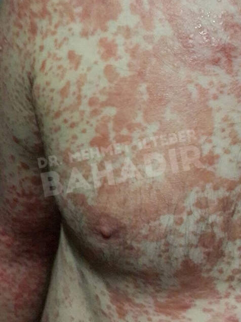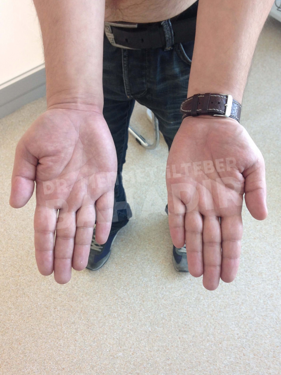 ماردين ، مريضة عمرها 19 عامًا. تم تشخيص المريض بالصدفية منذ 4 سنوات وبدأ العلاج في مشفى Cerrahpasa. لم يستطع المريض الحصول على نتائج كافية من العلاج. عندما جاء المريض إلينا ، كانت قد قصت شعرها بسبب الآفات الموجودة في رأسها. أخبرنا المريض أنه يريد أن يعالج. كان المريض يعاني من آفات واسعة في عمق الشعر ، بين الصدر والرقبة والظهر والذراعين والساقين. تم إعطاء المريض مدة علاج 3.5 شهر. أثناء العلاج ، كان جلد المريض سليما. آفات فروة الرأس تتحسن بسرعة. لا توجد آفة في جسم المريض. يطبق Mehmet Ilteber العناية بالبشرة الموصى بها من Bahadir.